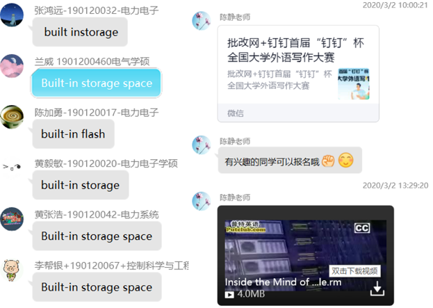 本学期初的英语课与以往有点不太一样,由于受到疫情影响,陈静老师的英语课通过QQ语音进行网上授课。为保证课堂质量,认真负责的陈老师在授课前一周进行试课,调试设备。课前,会提前将上课所需的电子版文档以及听力语音上传到群文件,让大家通过课前学习以便更好的进行课堂互动。