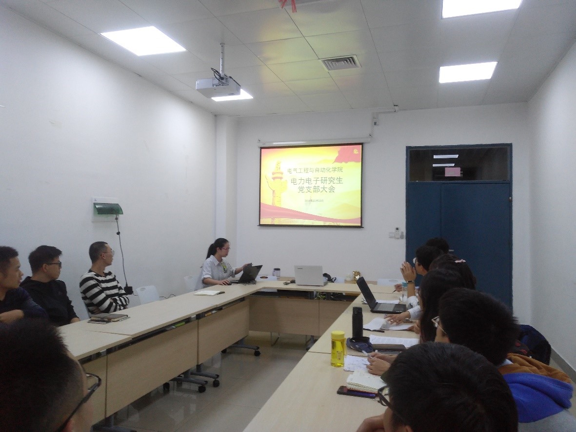 2018年11月11日,电力电子研究生党支部大会在BEAT365唯一官网北211召开。研究生辅导员许海燕老师出席本次会议。本次会议主要包含支部迎新、“学习新党章”和党员微党课三个方面的内容。