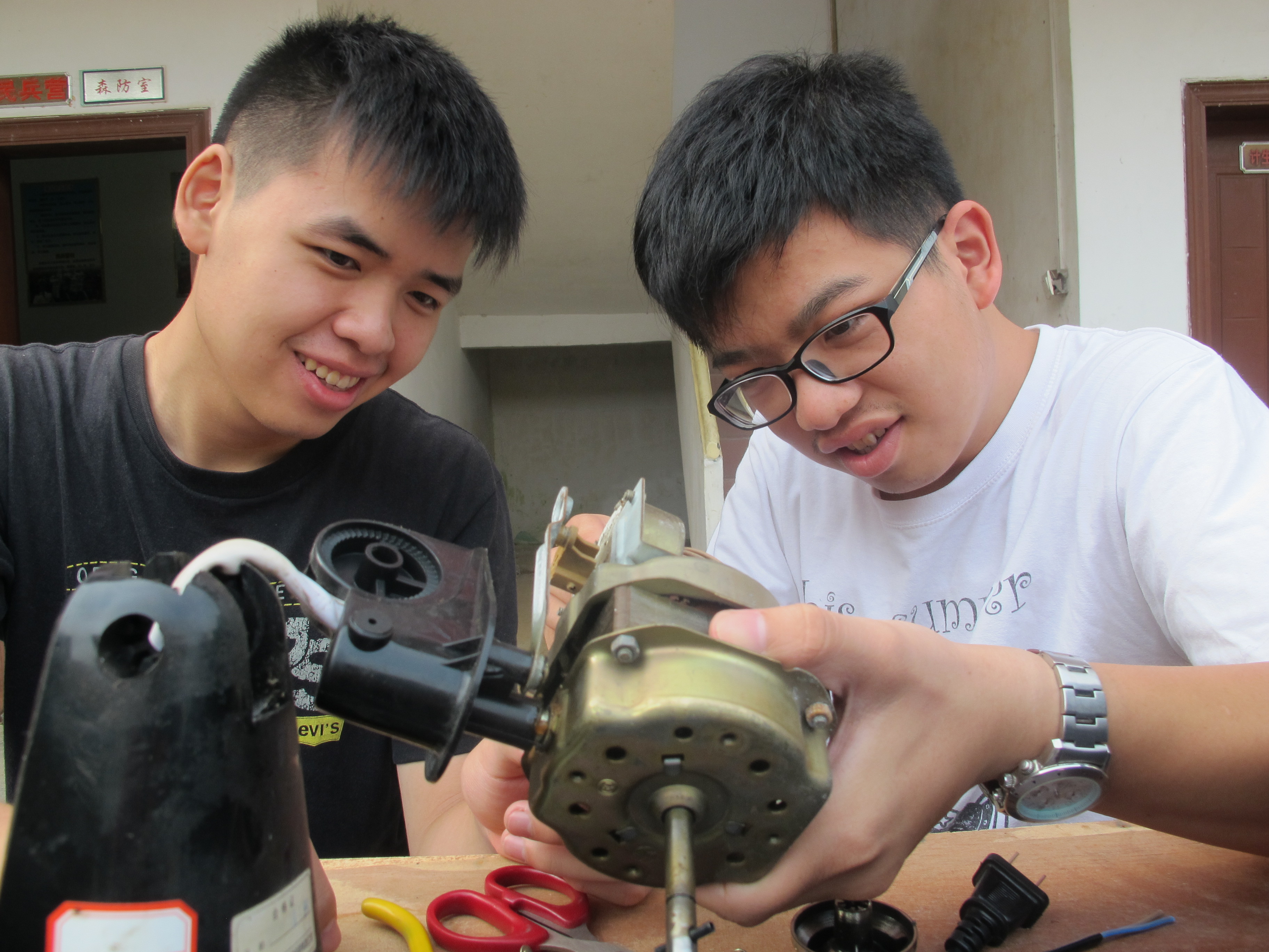 与往年一样,实践队的实践活动仍以义务维修为中心展开,同时宣传了农村安全用电的知识。三天内,队员们共收到了43件电器,修好了31件。值得一提的是,实践队收到了一个有故障的远程矿灯。拆开后,队员们很快发现了问题所在——开关故障。但由于路途遥远与及型号问题,实践队没有带所需型号的开关。最后,通过队员的奇思妙想,即使缺少材料,也修好了远程矿灯。“纸上得来终觉浅,绝知此事要躬行。”用所学到的知识,再加上实际的的锻炼,队员们以学创新变废为宝。
