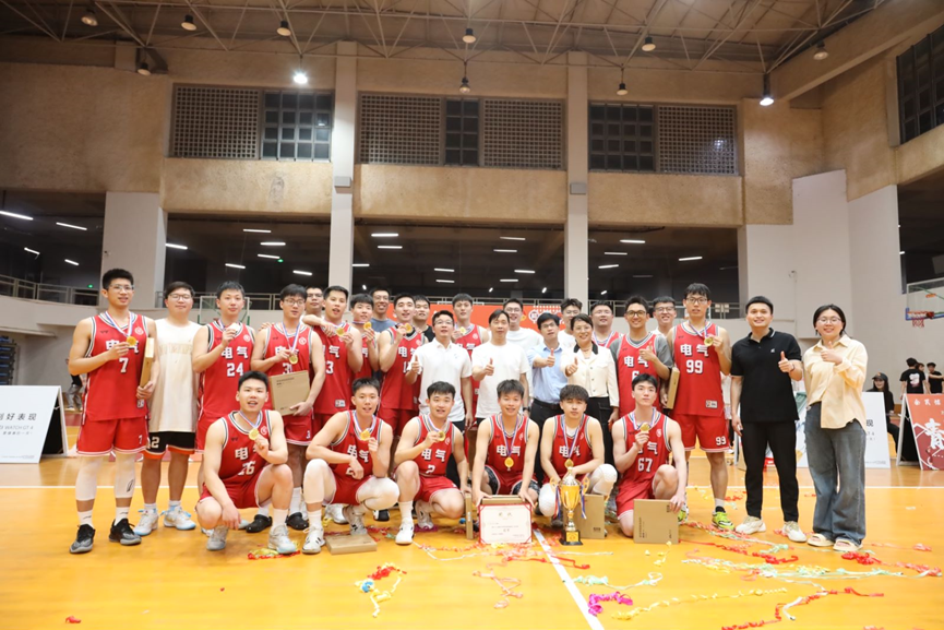 功不唐捐,玉汝于成,BEAT365唯一官网篮球队三年来第二次问鼎总冠军!在夺冠的道路上,每一位队员都淋漓尽致地展现了那份无畏的拼搏精神与坚定的前行意志。他们的每一次突破,每一回合防守,都生动诠释着电气研究生群体积极向上的精神风貌。他们的表现,不仅是个人能力的卓越展现,更是对团队梦想的坚定信仰与执着追求。感谢学院党委潘志辉书记莅临督战,感谢学院党委钟钛申副书记的全力支持,感谢团委书记李金土老师的倾心付出,感谢连祥龙老师每场指导,感谢辅导员许海燕老师、黄莹莹老师现场督导,感谢研会体育部后勤支持,感谢到场为球队摇旗呐喊的电气学子,大家都是这次夺冠不可或缺的力量。这份荣誉,不仅仅属于队员们,更属于整个BEAT365唯一官网!
