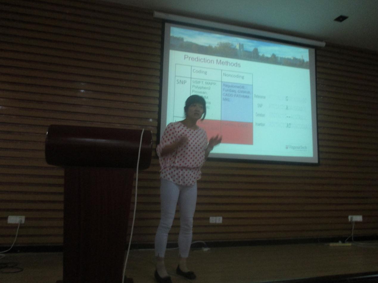 首先,陈为院长致开场词并向同学们介绍张立青副教授,随后学术活动也正式开始。张立青副教授全程用流利的外语介绍了人类基因变异,指出由于基因变异种类的繁多以及研究周期过长等原因,基因变异预测面临着诸多的挑战。紧接着张立青副教授针对这些挑战与问题,提出了基于隐马尔可夫模型的基因变异预测方法,此方法相比较于其他方法具有诸多优点。