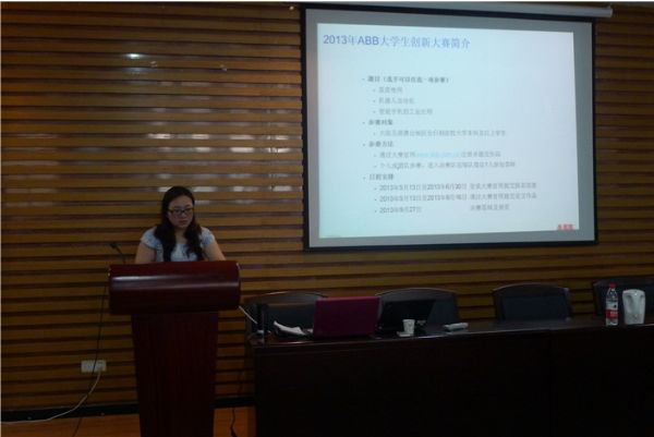 讲座开始前,李慧女士着重介绍并推广ABB大学生创新大赛。在简短地回顾了2012年ABB大学生创新大赛的过程后,介绍了今年的创新大赛的细则与奖励,并对福大的学子寄予厚望,期待着有更多的优秀人才参与到赛事中来。